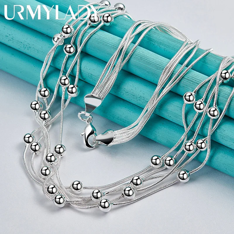 925 Sterling Silver Multi Snake Chain Ball Beads 18 Inch Charm Necklace For Women Wedding Party Gifts Fashion Jewelry