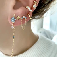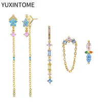 925 Sterling Silver Needle Blue Pink Crystal Stud Earrings For Women Fashion geometry Pendant Earrings Luxury Jewelry Gifts