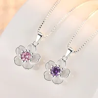 925 Sterling Silver Pink Purple Peach Blossom Necklaces For Women Luxury Quality Jewellery