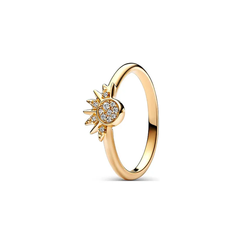 925 Sterling Silver Plated Sun Moon Sunflower Heart Rings For Women Original Flower Wedding Crystal Luxury Jewelry Accessories