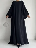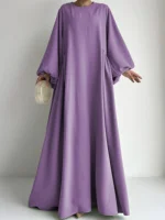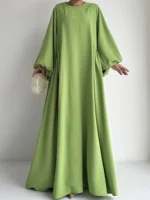 Abaya Ramadan Solid Bishop Sleeve Kebaya Kaftan, Elegant Crew Neck Maxi Length Dress, Islam Abayas For Women