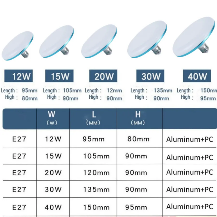 AC220V LED Bulb E27, Led Lamp Super Bright 12W, 15W, 20W, 30W UFO Leds Lights Indoor Cold White Lighting Table Lamps Garage Light