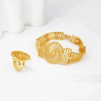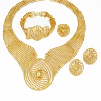 African Gold Color Big Jewelry Set Hollow Out Design Necklace Bracelet Earring Ring For Women Bridal Wedding Jewellery Gift