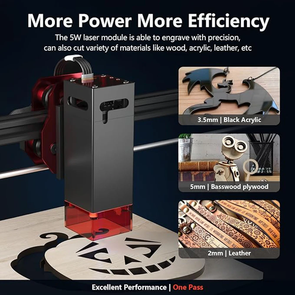 Ultra-Fine Compression: DIY KIT Laser Engraver output power is 5W, it is designed to be smarter, faster, more accurate and easier to use. Ultra-fine laser focal spot is reduced to 0.04×0.09mm,which makes the engraving effect more refined and outstanding . The engraving machine speed can be as high as 12000 mm/min, engraving area is 400*400mm.