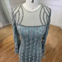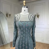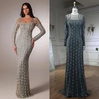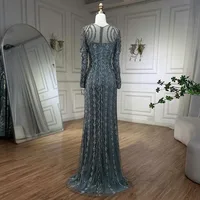 Arabia Gray Mermaid Floor Length Luxury Beaded Cut Out Evening Dresses Gowns For Women Wedding Party