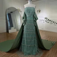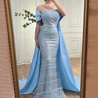 Arabic Sage Blue Elegant Mermaid Strapless Beaded Evening Dresses For Women Wedding Party
