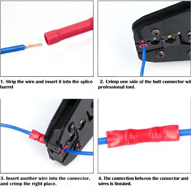 Assorted Butt Connector Insulated Crimp Terminals Electrical Cable Wire Connectors BV1.25 BV2.5 BV5.5 Car Accessories