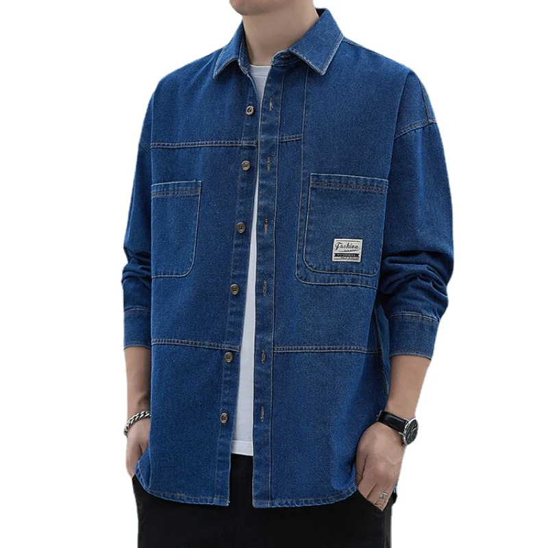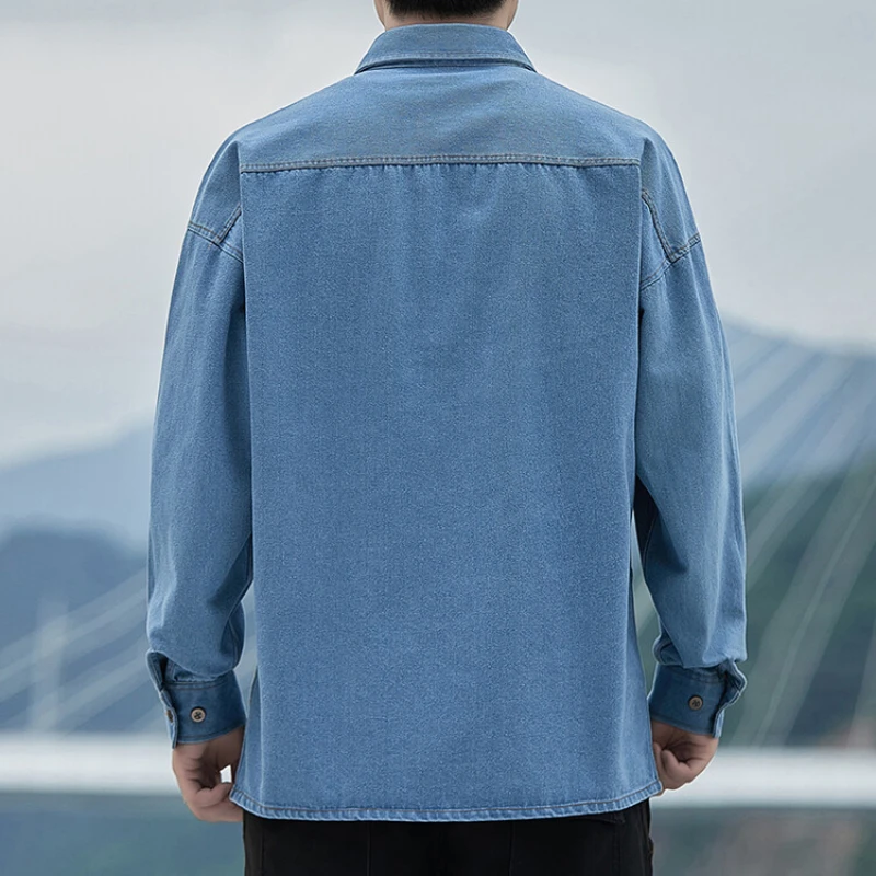 Autumn Thin Denim Shirt Men’s Long Sleeve Casual Fashion Versatile Light Blue Loose Solid Color Shirt