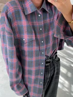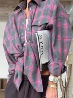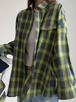 Autumn Winter Women Oversized Plaid Shirt Vintage Long Sleeve Loose Fit Blouse For Woman