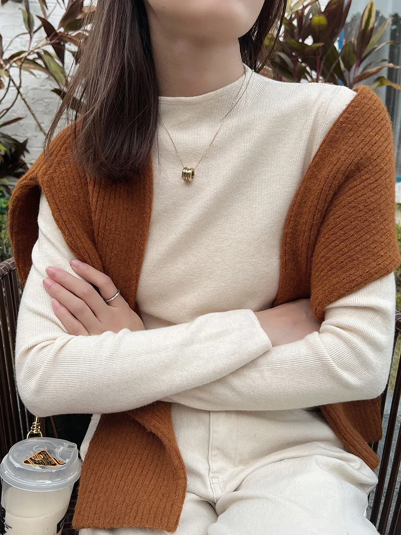 Bacis Sweater Women’s Mock Neck Pullover Sweater Knitted Autumn Winter New Solid Color Outer Wear All-Match Bottom Top