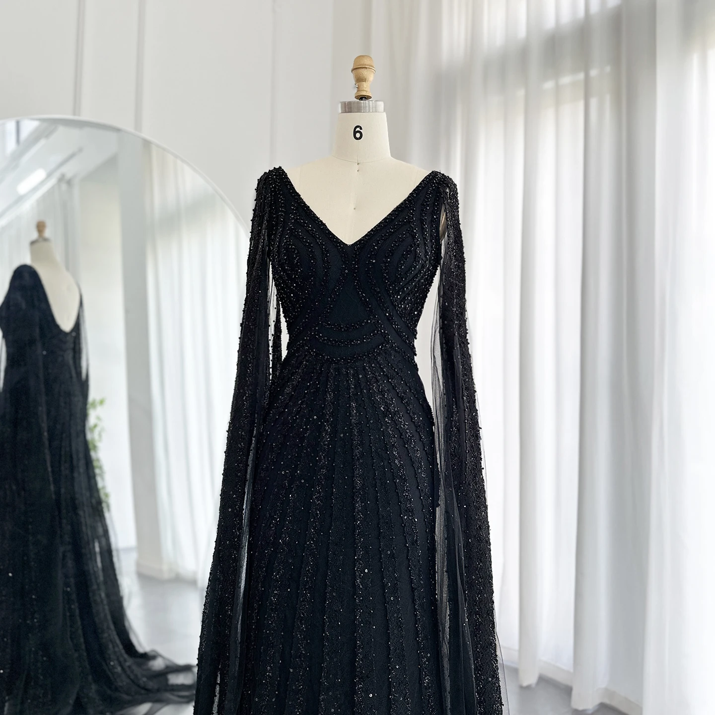 Be the first to review “Black Arabic Mermaid Evening Dresses with Cape Sleeves, Luxury Beaded Dubai For Women Wedding Party Gowns” Cancel reply