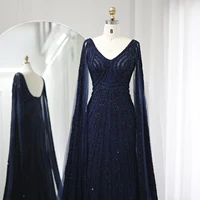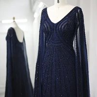 Luxury Blue Mermaid Dubai Evening Dresses with Cape Sleeves Sage Green Elegant Arabic Women Wedding Party Gowns