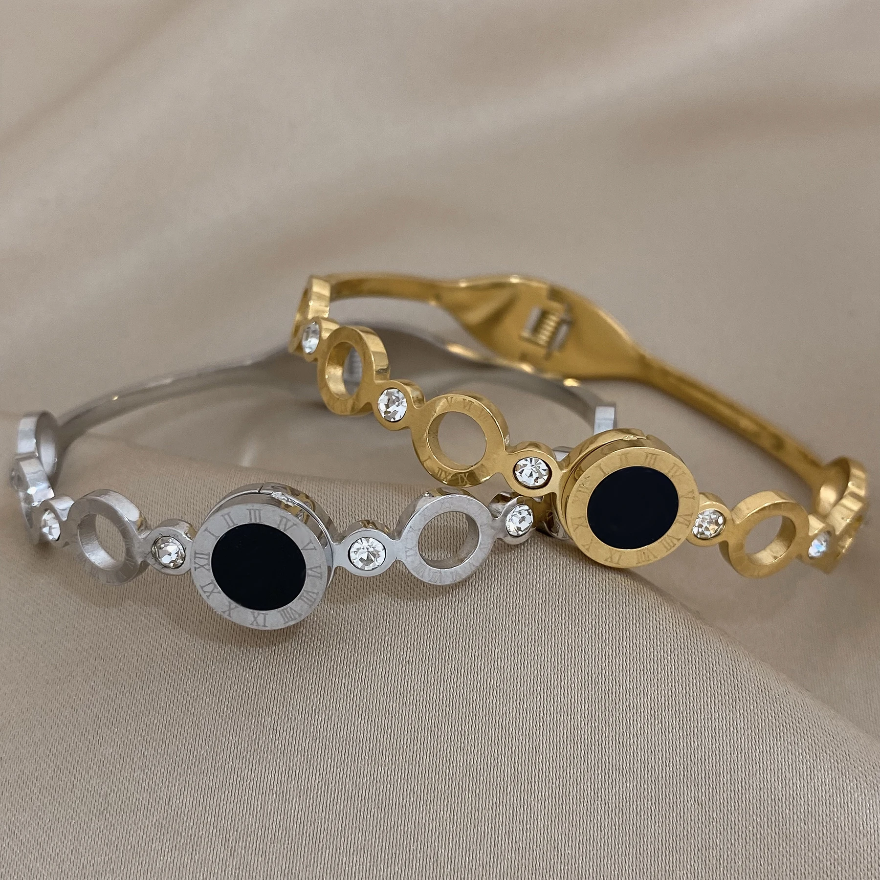 Be the first to review “Black Roman Numerals Stainless Steel Bangles Bracelets for Women New Design Gold Silver Color Waterproof Jewelry Gift” Cancel reply