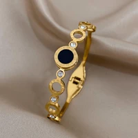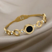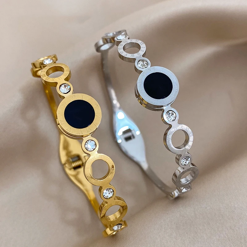 Black Roman Numerals Stainless Steel Bangles Bracelets for Women New Design Gold Silver Color Waterproof Jewelry Gift