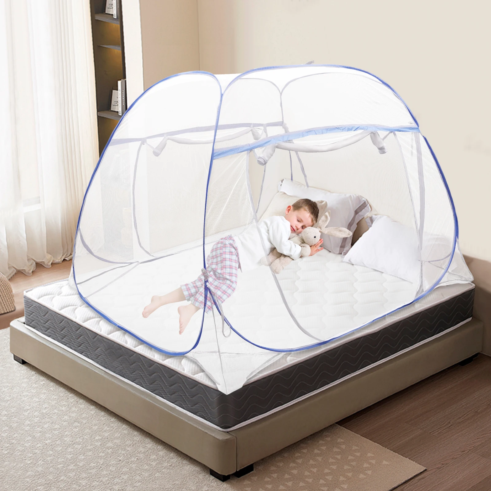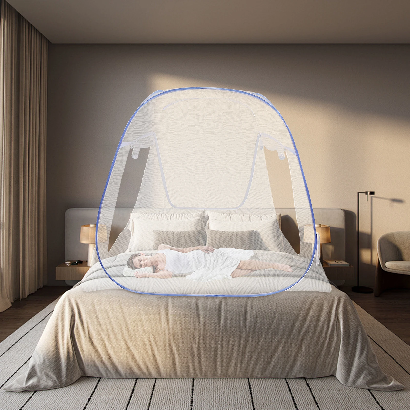 Cool and Comfortable: The fine mesh polyester gauze prevents small mosquitoes or insects from invading while ensuring normal air circulation to improve your sleep quality, allowing you to have a cool and comfortable night.