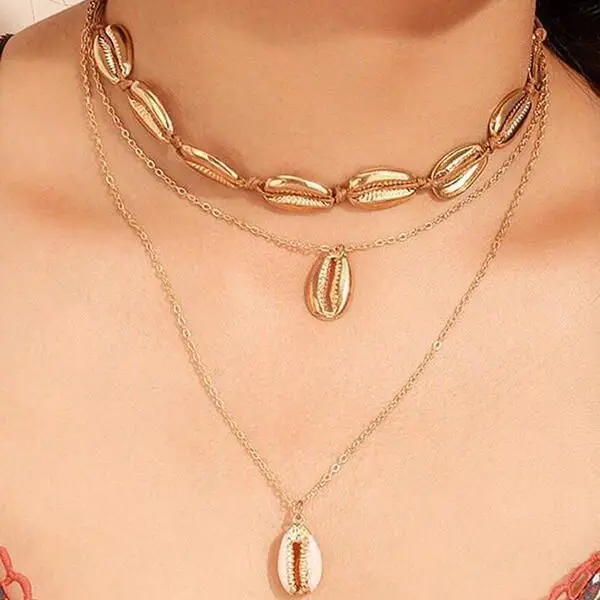 Bohemia Metal Gold Color Shell Necklace Summer Beach Choker for Women Girl Trendy Unique Vacation Jewelry Gift