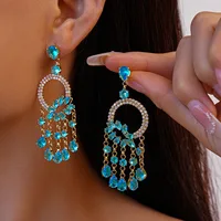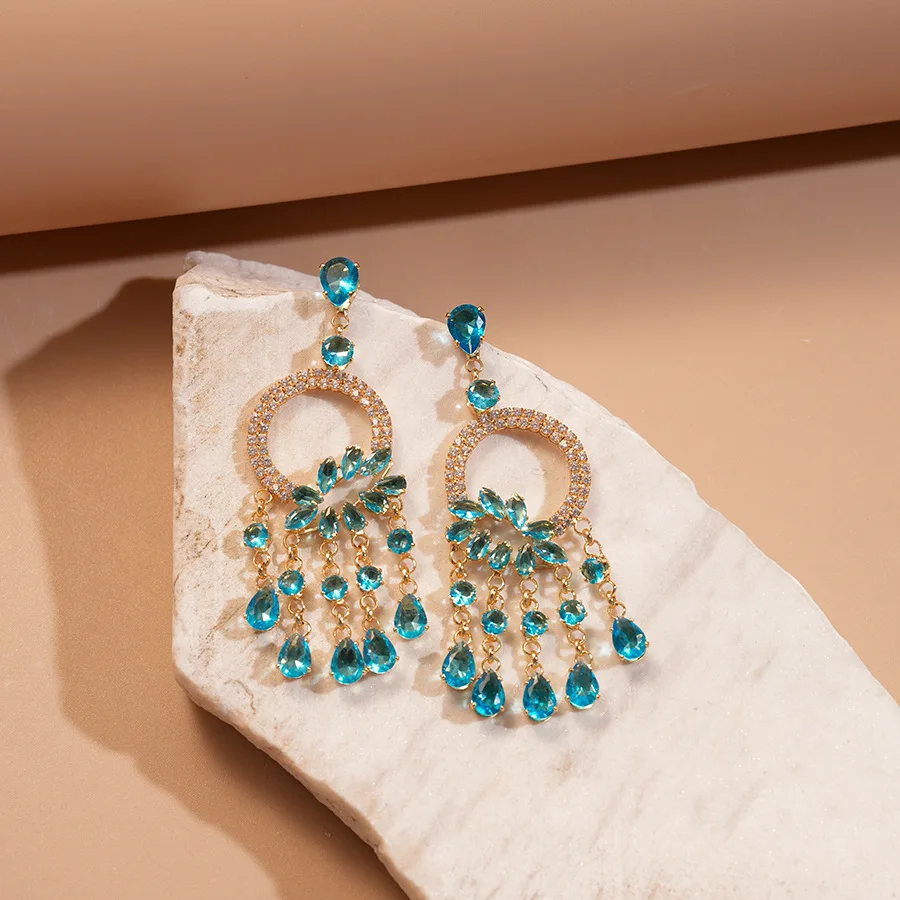Bohemian Ethnic Seed Crystal Long Earrings for Women Blue Zircon Tassel Dangle Earring Girls Fashion Party Jewelry