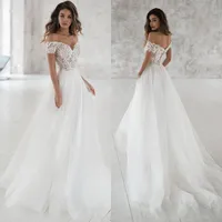 Boho Beach Wedding Dress Off The Shoulder V-Neck Appliqued Bride Dresses A Line Elegant Lace Wedding Bridal Gowns Bohemian