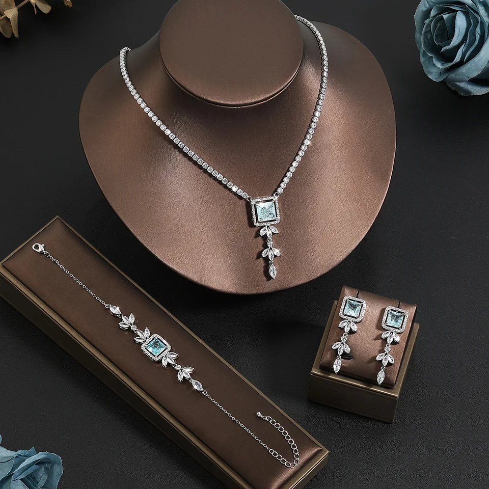 Be the first to review “Brand Vintage White Blue Crystal Burst Zircon Jewelry Sets for Women Luxury Wedding Pendant Necklace Earrings” Cancel reply