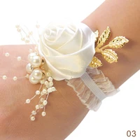 Bridesmaid Faux Rose Bracelet Wedding Wrist Corsage Polyester Ribbon Pearl Bow Bridal Gifts Hand Flowers Party Prom Accessories
