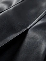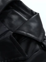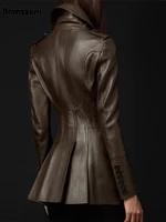 British Style Brown Leather Trench Coat for Women Double Breasted Runway Fashion Fitted Soft Faux Leather Blazer