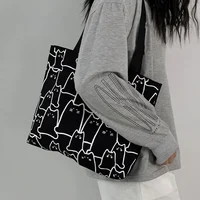 Canvas Bags Handbag for Women Shopper Cute Cat Tote Bag with Zipper Designer Bag Japanese Style Cartoon Small Shoulder Bags