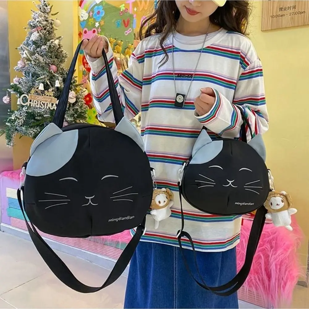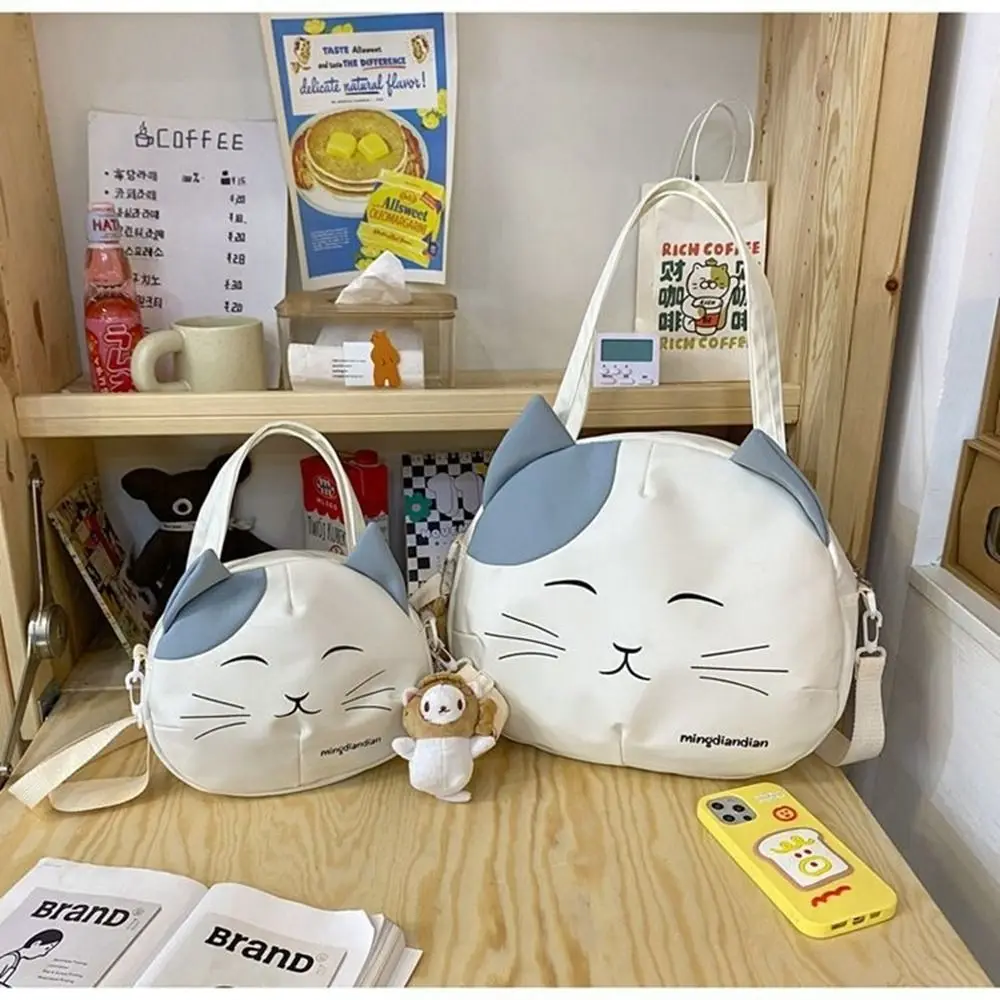 Canvas Nylon Prints Cat Messenger Bag Cute College Style Large Capacity Crossbody Bag Portable Shoulder Bag Handbag Streetwear