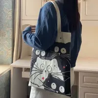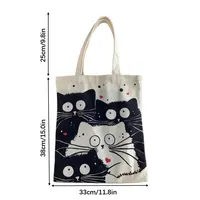 Canvas Tote Bag for Women Aesthetic Cute Cat Shopping Grocery Reusable School with Inner Zipper Girl Gift