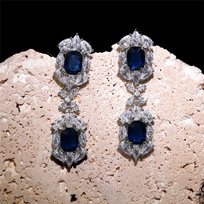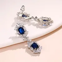 Luxury High-quality Drop Earrings Delicate Bright Blue CZ Accessories Trendy Party Jewelry Gorgeous Birthday Gift for Mom