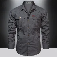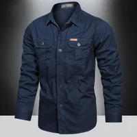 Cargo Shirt Men Long Sleeve Casual Cotton Shirts High Quality Camisa Militar Over shirt Brand Clothing Black Blouses 5XL