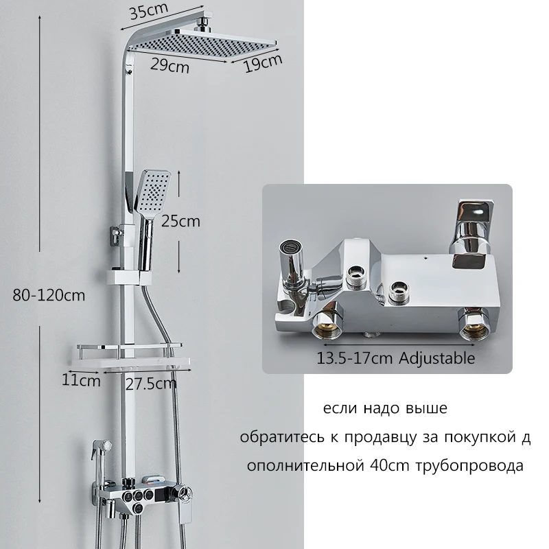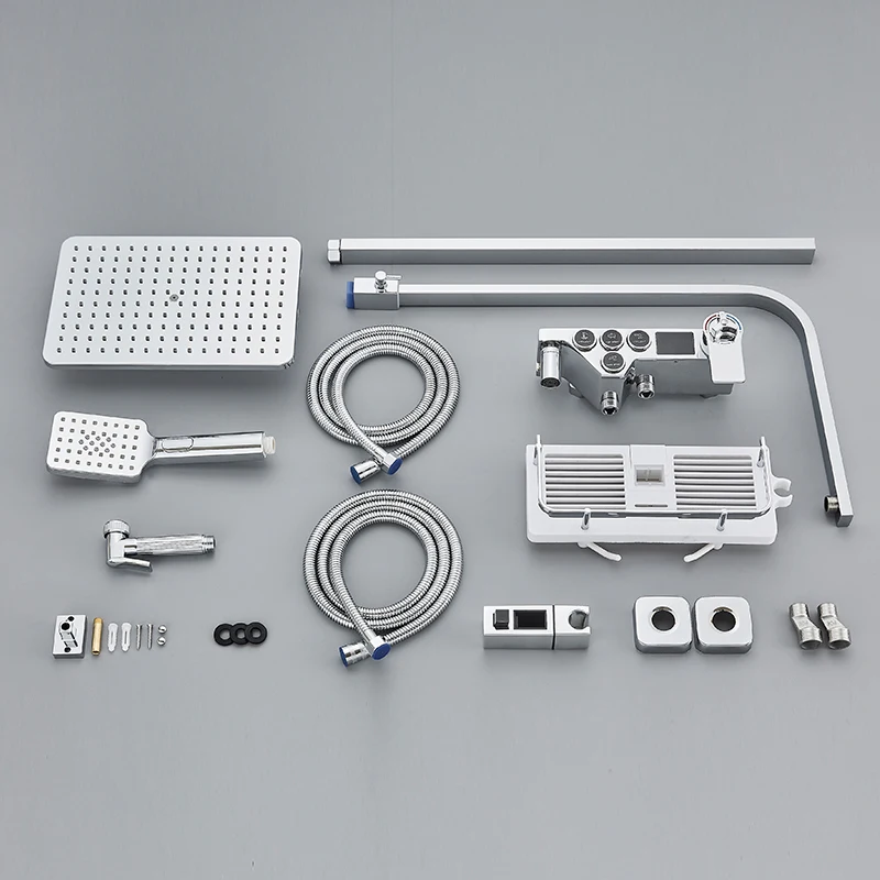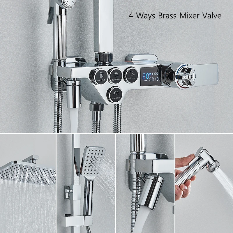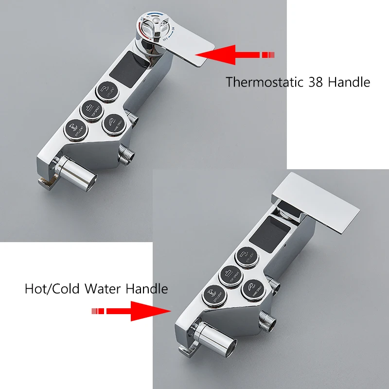 Be the first to review “Chrome Bathroom Display Thermostatic Shower Faucet Set Rainfall Bathtub Tap With Bathroom Shelf Water Flow Produces Electricity” Cancel reply