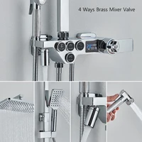 Chrome Bathroom Display Thermostatic Shower Faucet Set Rainfall Bathtub Tap With Bathroom Shelf Water Flow Produces Electricity