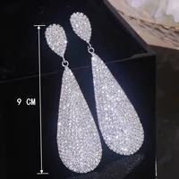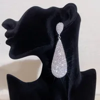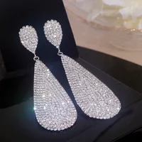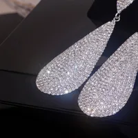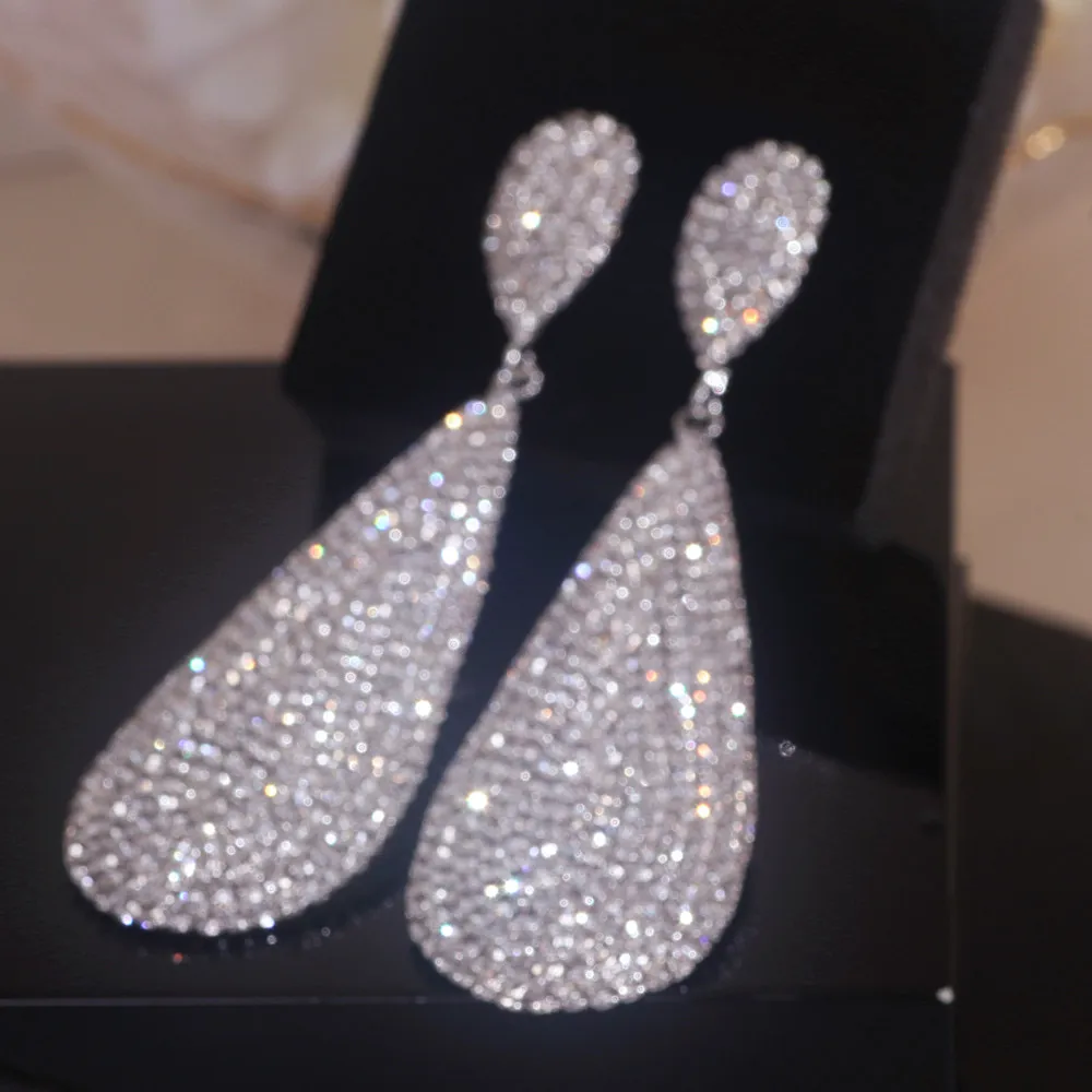 Classic Elegant White Rhinestone Water Drop Shape Pendant Earrings for Women Silver Color Dangle Earrings Wedding Party Jewelry