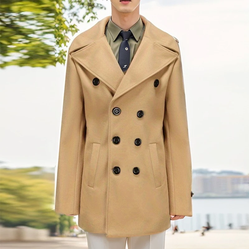 Classic Lapel Double Breasted Coats Men Winter Vintage Solid Color Loose Long Sleeve Woolen Outfits for Men’s Fashion Outerwear