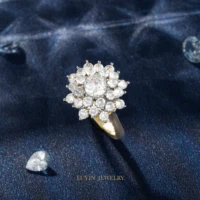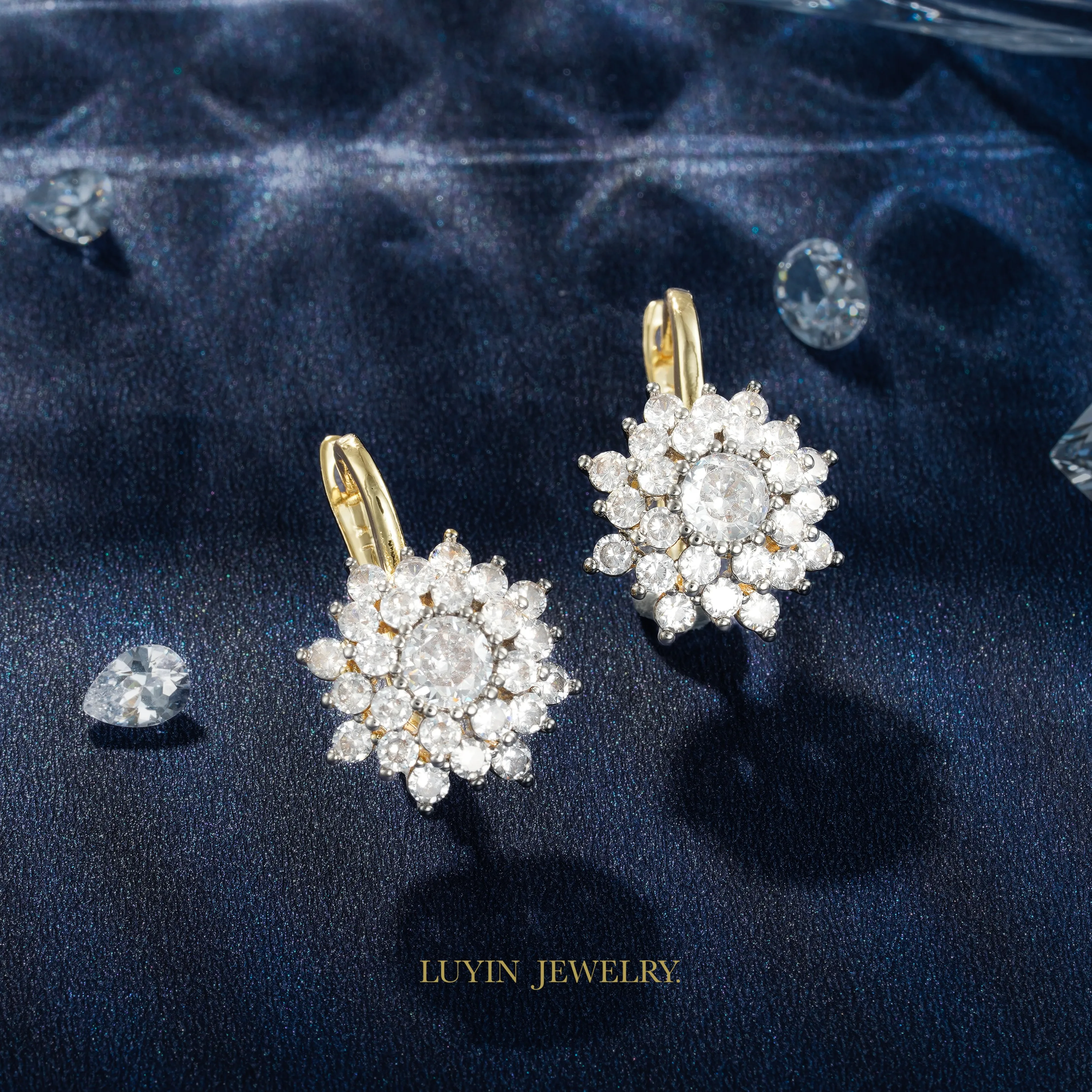 Classic Style Flower Shape Earrings Ring Set For Women Copper Plated 14K Gold Wedding Gorgeous Accessories