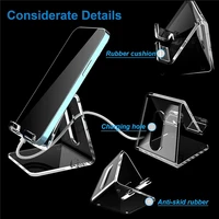 Clear Acrylic Cell Phone Stand Desk Dock Holder for iPhone 14, 13 Pro Samsung Universal Desktop Charger Support Telephone Mount
