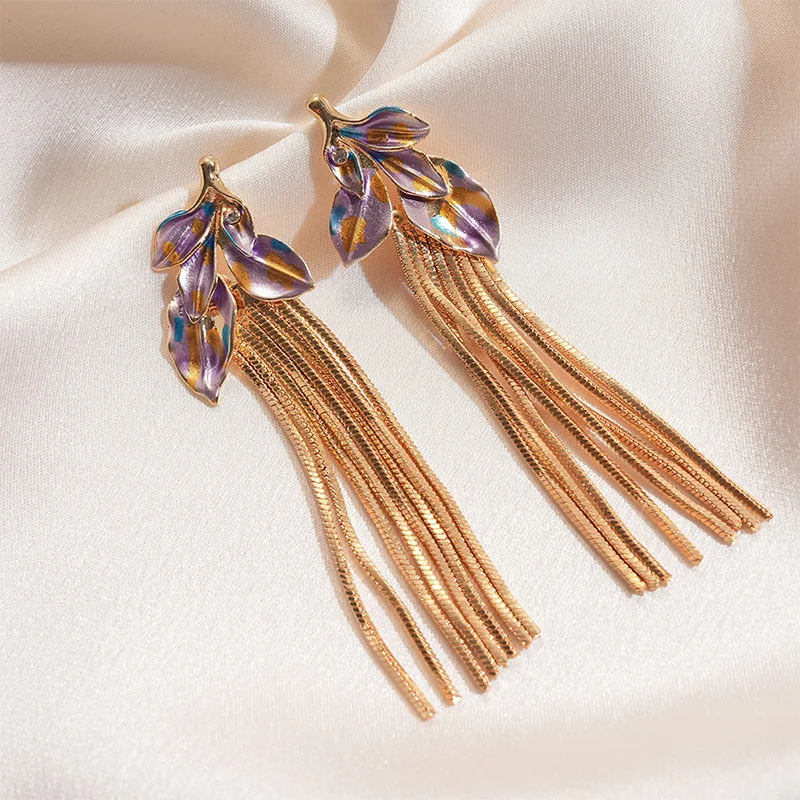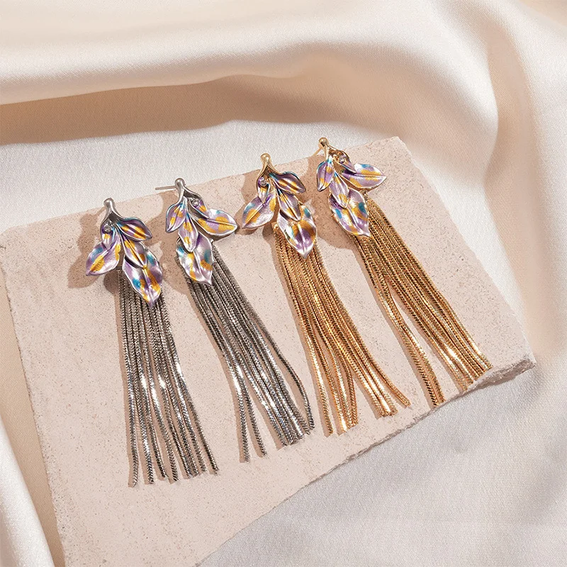 Color Leaf Elegant Long Earrings Fashion Jewelry Women Trendy Party Gifts Delicate Temperament Exaggerate