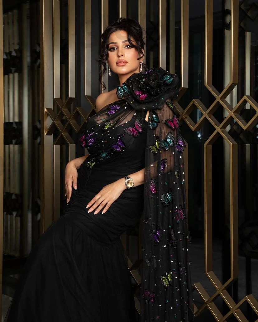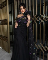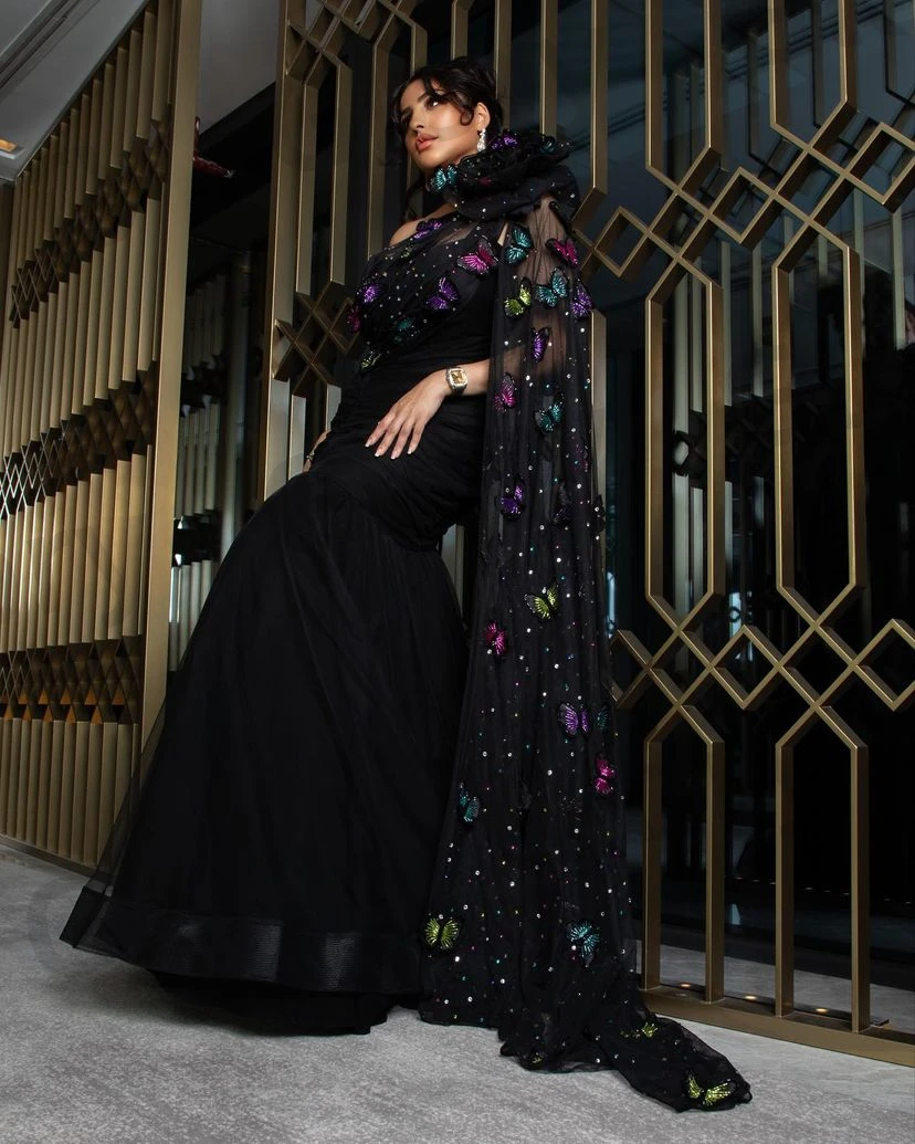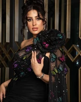 Colorful Butterfly Black Mermaid Prom Dresses Floor-Length One-Shoulder Evening Dresses Formal Occasion Wedding Party Gown