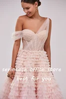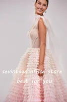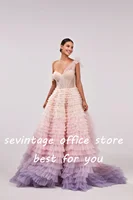 Colorful Tiered Ruffled Tulle Prom Dresses Beading Crystal Pleat Ruched Long Evening Gowns Wedding Party Dress