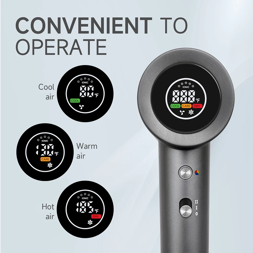 Compact Hair Dryer, Faster Drying, Shinier Hair, Temperature, LED Display, 110000RPM/MIN, Portable, Ionic Blow Dryer