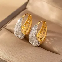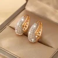 Crystal Zirconia Hollow Fashion Gold Color Hoop Earrings for Girls Women Sparkling Zircon Ladies Earring Party Jewlery