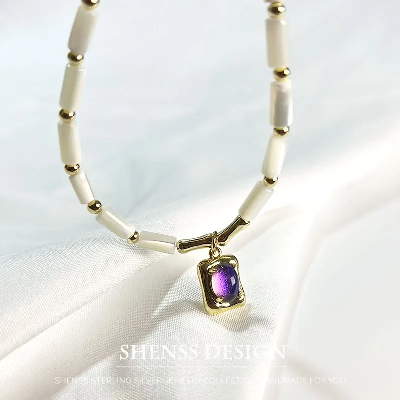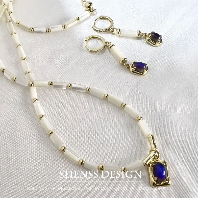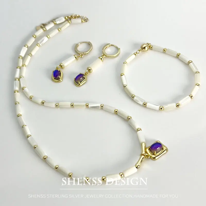 Cylindrical Shell Necklace Bracelet Earring Purple Pendant 14k Copper Plated Gold Jewelry