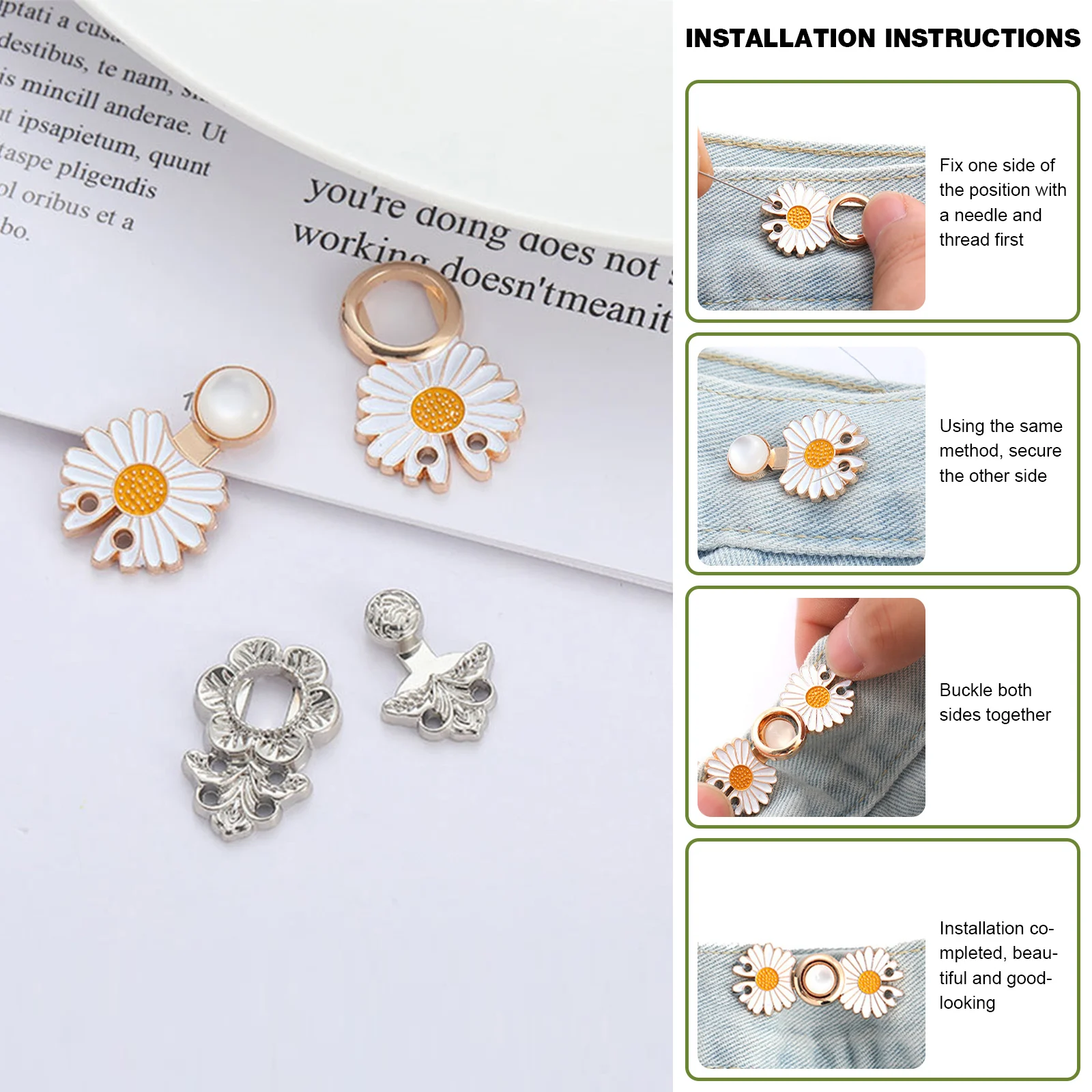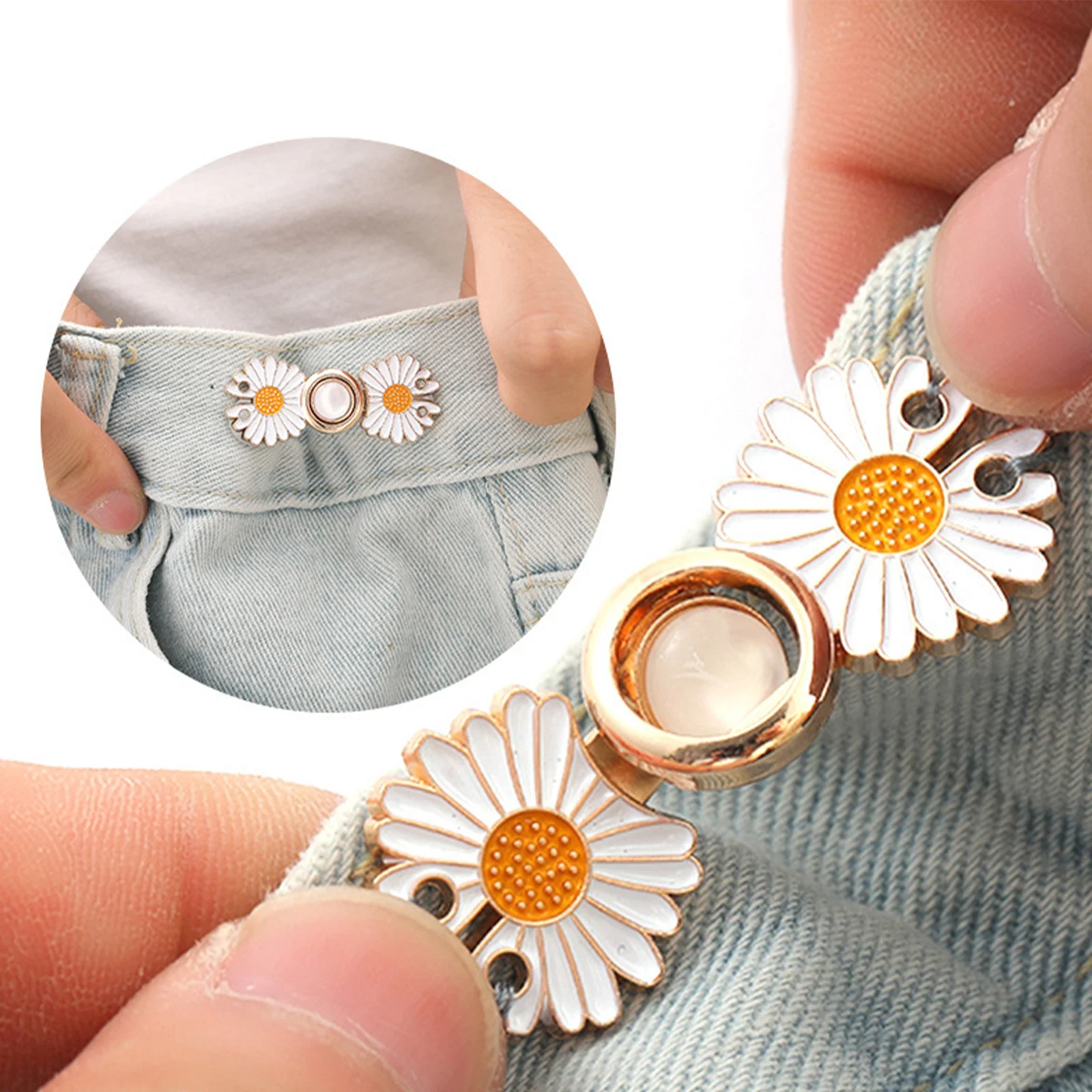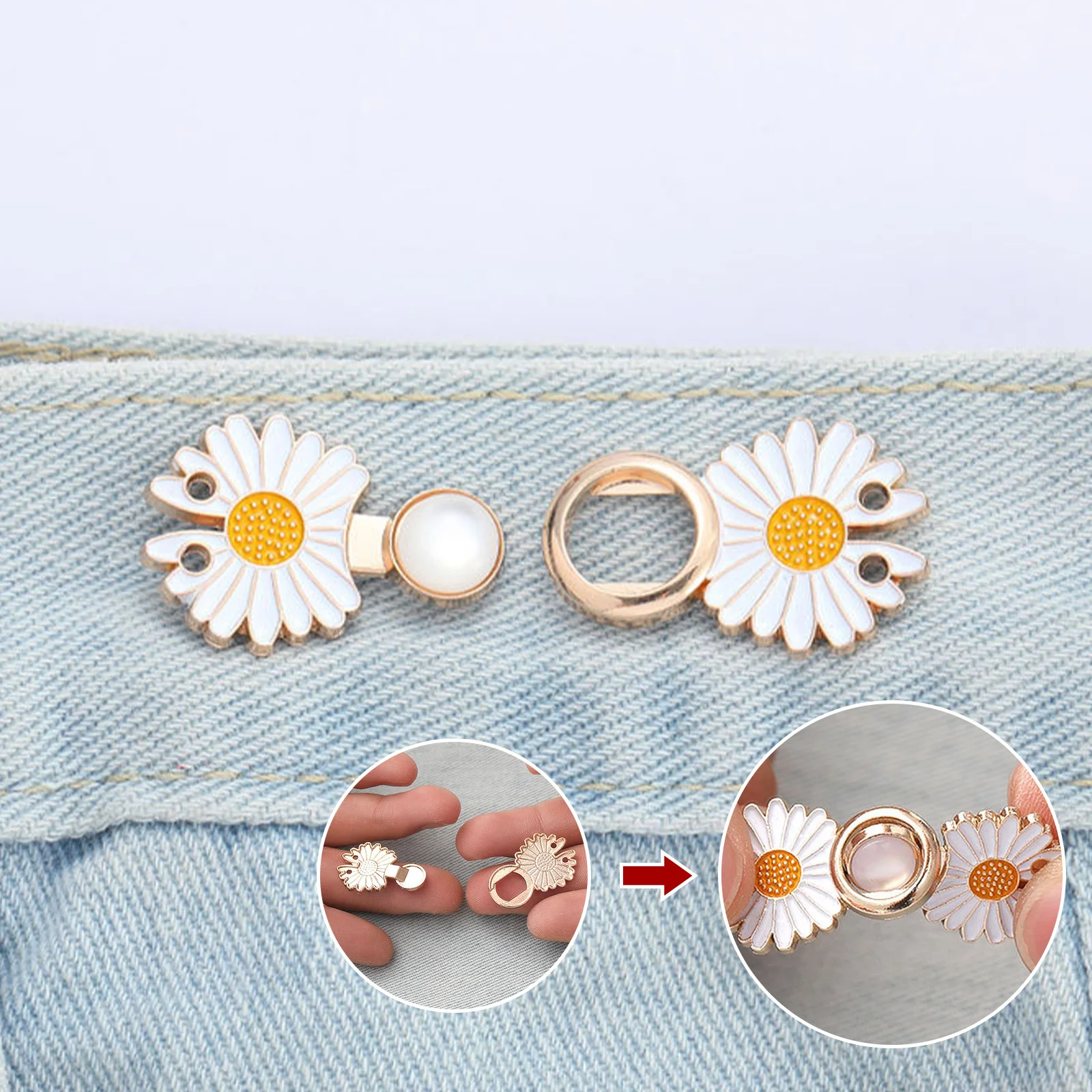 Be the first to review “Daisy Flowers Alloy Pants Tighten Waist Brooches Buckle Pins Waist Clip Adjustable Snap Detachable Button for Pants Jeans” Cancel reply