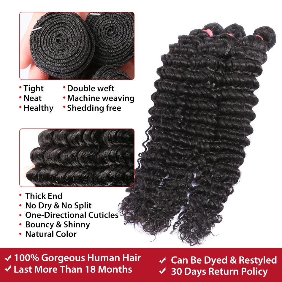 Hb8c73c89ec4f4c0e86b330a6eebc1e1dH Deep Wave 28, 30, 40 inches 3, 4 Bundles Brazilian Remy Hair 100% Natural Water Wave Curly Human Hair Extensions Mallzona