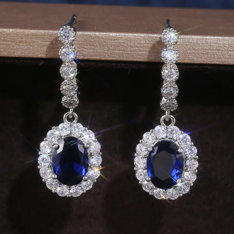Delicate Drop Earrings for Women Silver Color Inlaid Blue/White Zirconia Elegant Wedding Accessories Classic Jewelry Gift