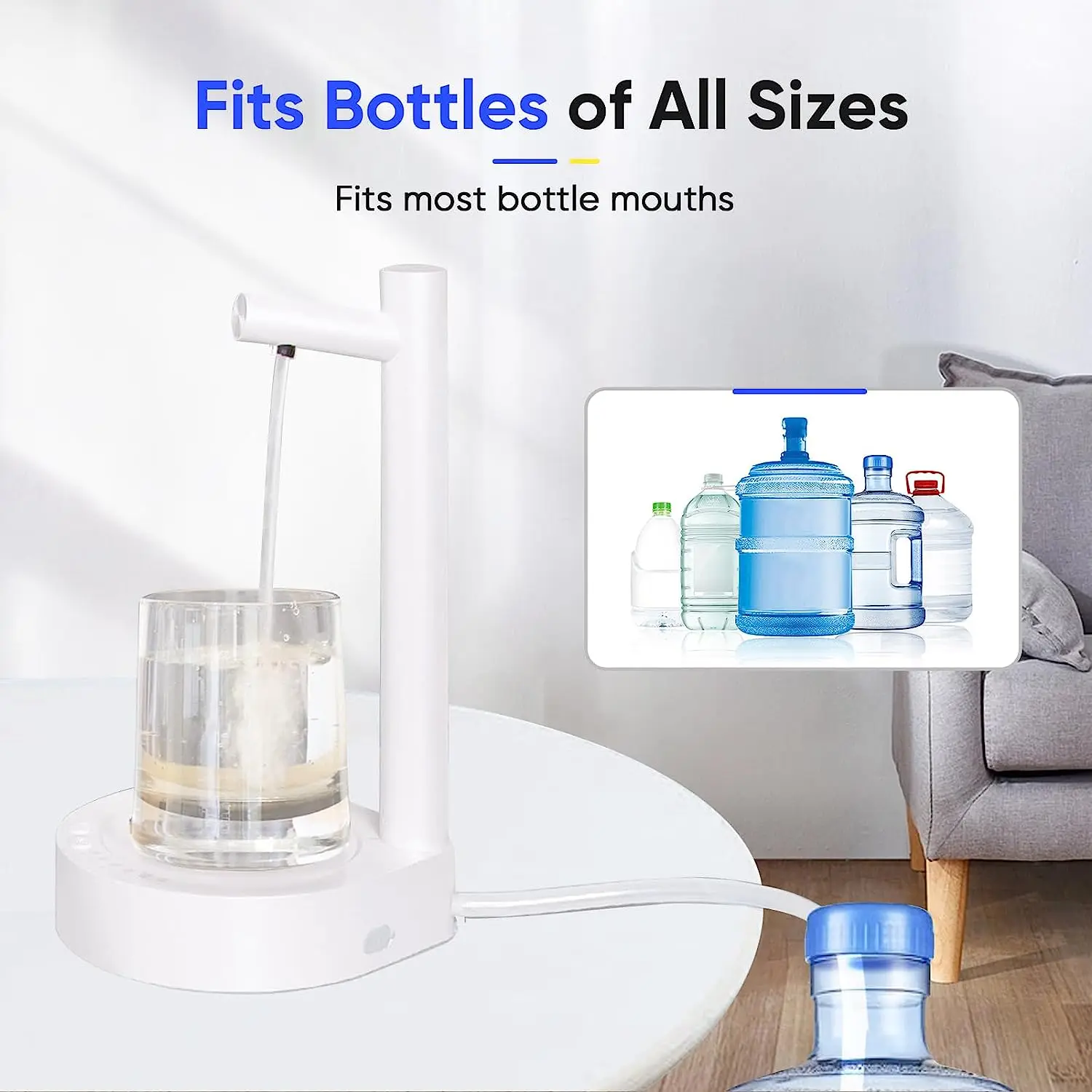 1.Please place the water bottle lower than this 5 gallon water jug dispenser, keep the pump hose inserted in the water.