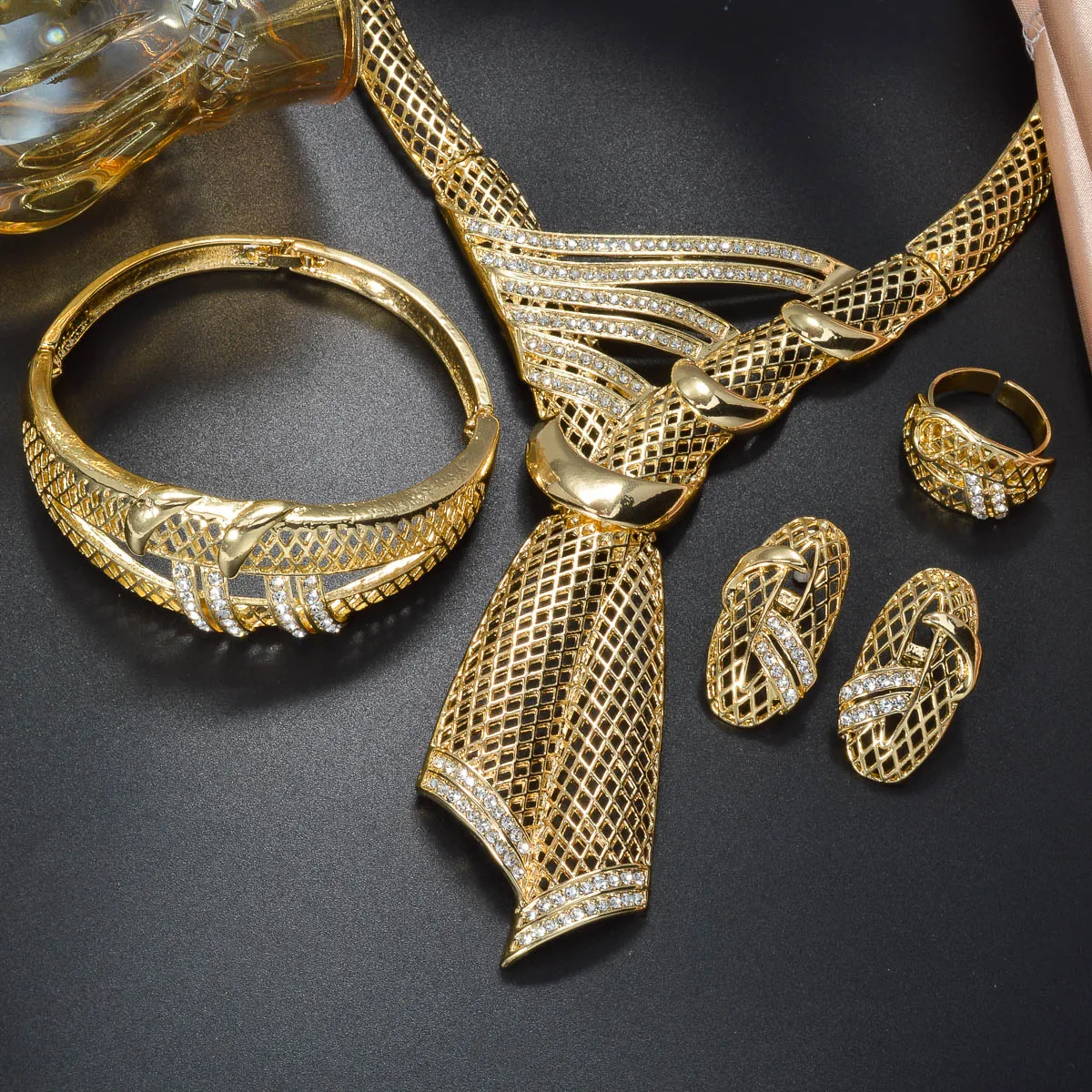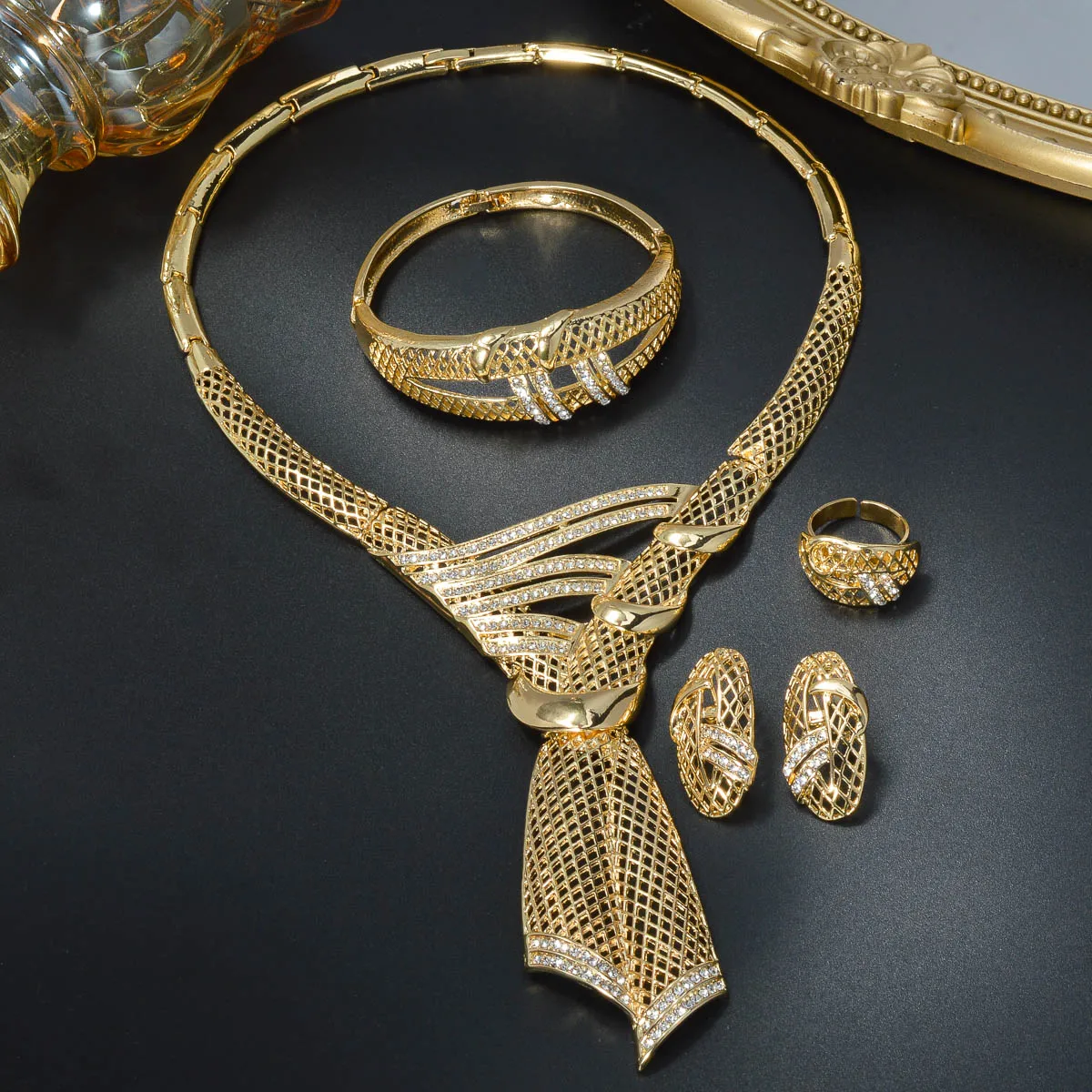 Dubai Jewelry Set For Women Silver Plated Luxury Necklace Earrings Bracelet And Ring Set Jewelry For Wedding Party Trending