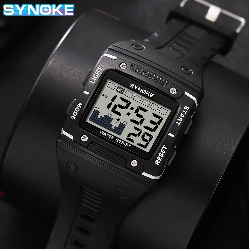 SYNOKE Digital Watch Men Sports Electronic Watch Waterproof Night Glow Large Screen Square Student Watch Outdoor Running Camping