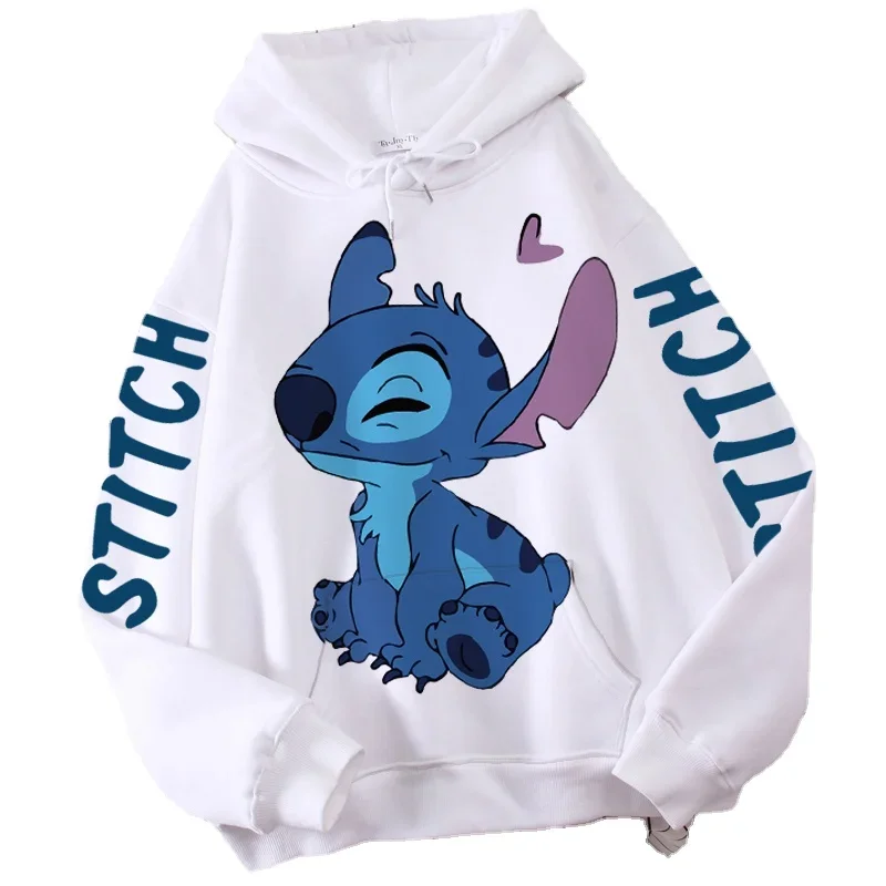 Disney Hoodie Fashion Stitch Angel Monster Letter Cartoon Sweatshirt Pullover Cute Harajuku Unisex Women’s Pocket Top