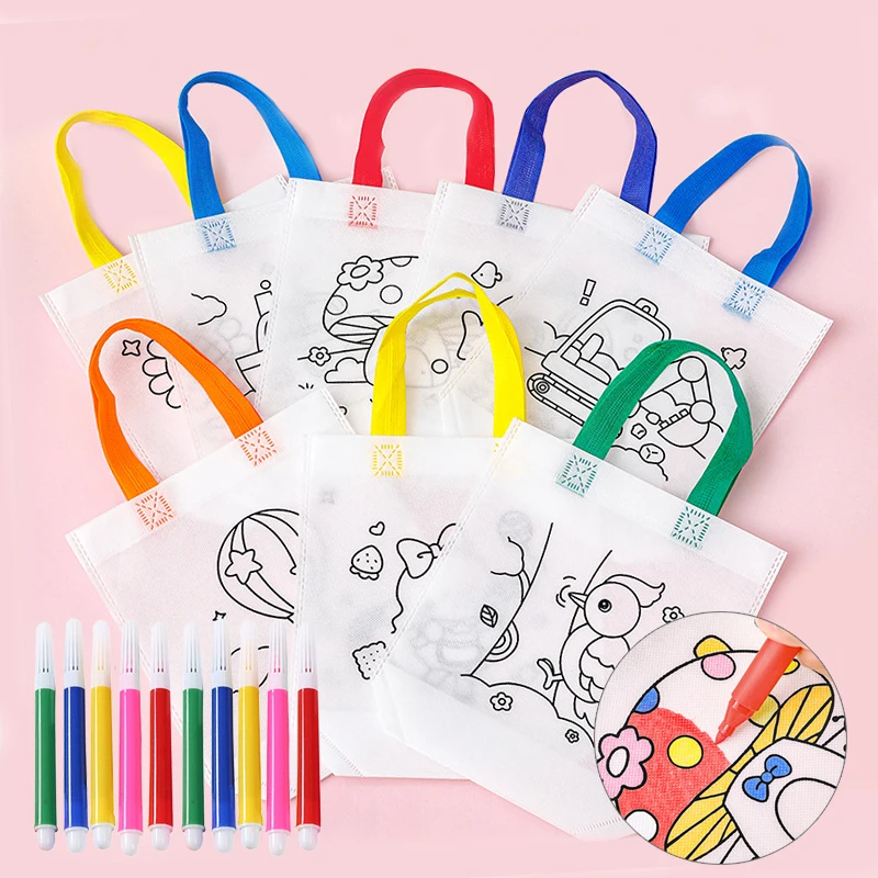DIY Graffiti Bag with Coloring Marker Carnival Animal Art Party Goodie Bags for Kids Eco Reusable Mini Non-woven Shopping bag